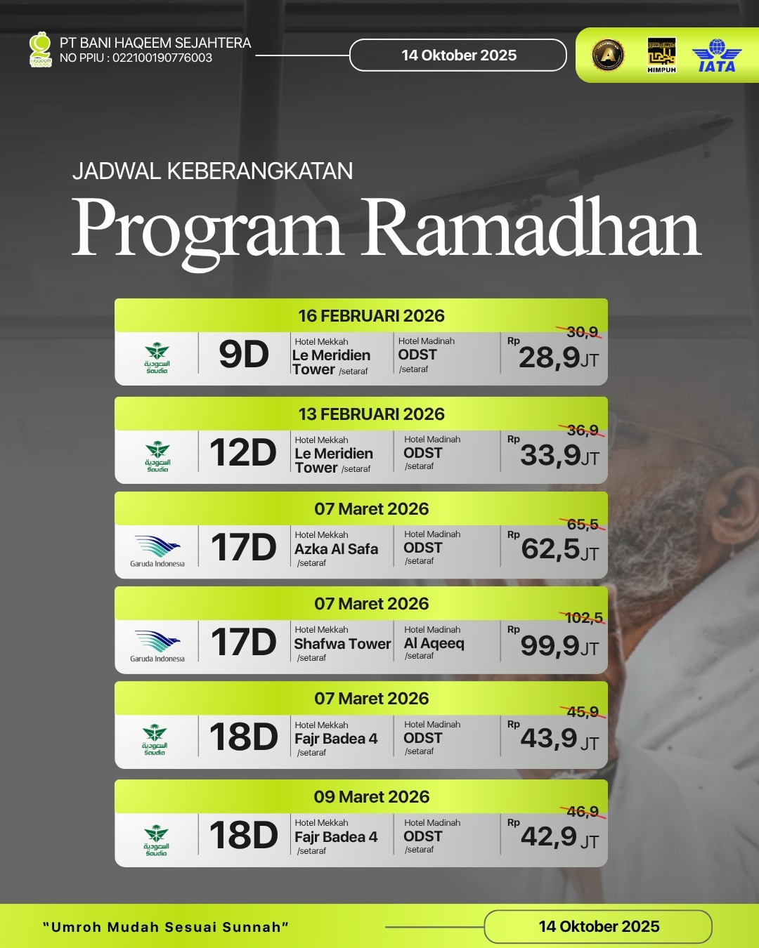 Haqeem Travel adalah Travel Umroh dengan Izin PPIU No. 02210019007760003Â Penyelenggara ibadah Umrah yang bisa dipercaya, amanah, jujur, senantiasa berusaha mendampingi tamu-tamu Allah menuju Baitullah dan memberikan pelayanan terbaik guna mencapai ibadah umrah yang makburah